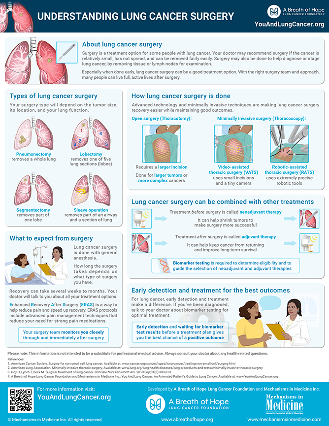 Our You And Lung Cancer educational infographics provide answers to common questions about lung cancer to help you start important conversations with your doctor about your cancer care and treatment. Learn the basics about lung cancer diagnosis, staging, treatment, what to expect from treatment, and more: